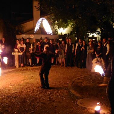 Als gemeinnütziger Verein verlangen wir keine Gage, sondern im Höchstfall unsere Aufwandskosten (z.B. Verbrauchsmaterial der Feuershow).